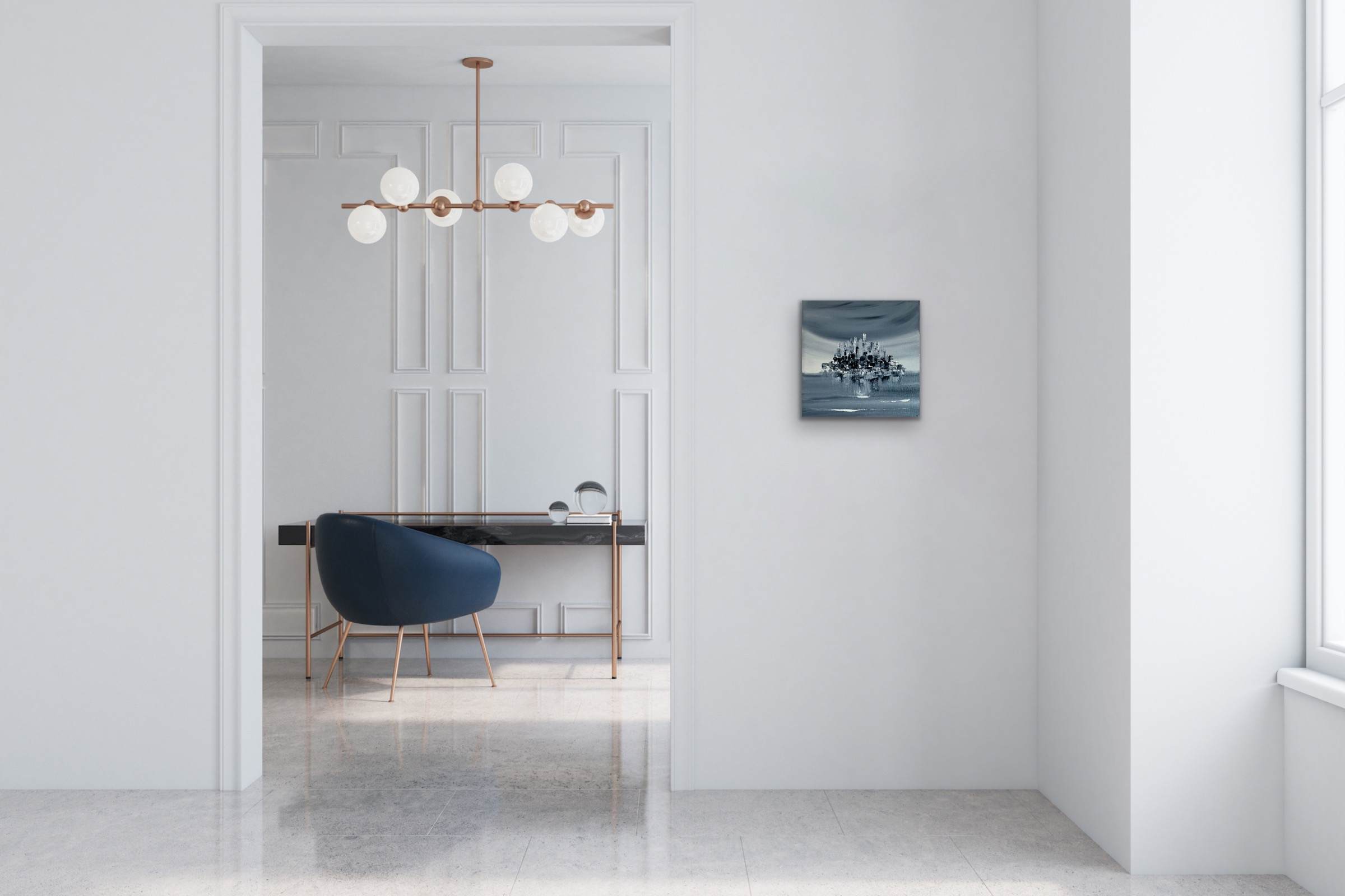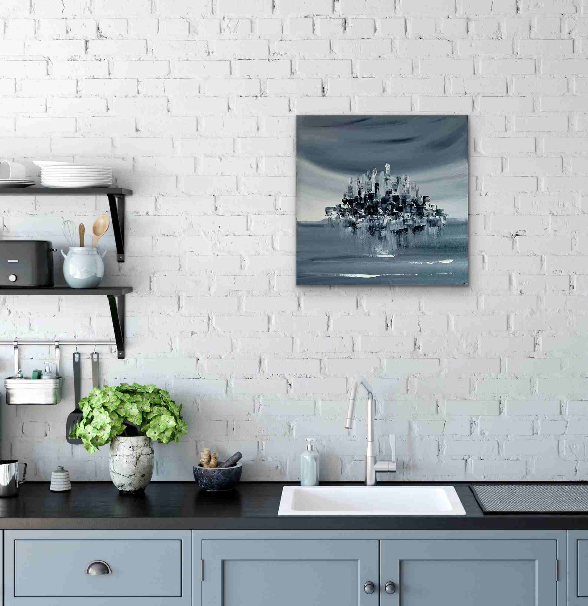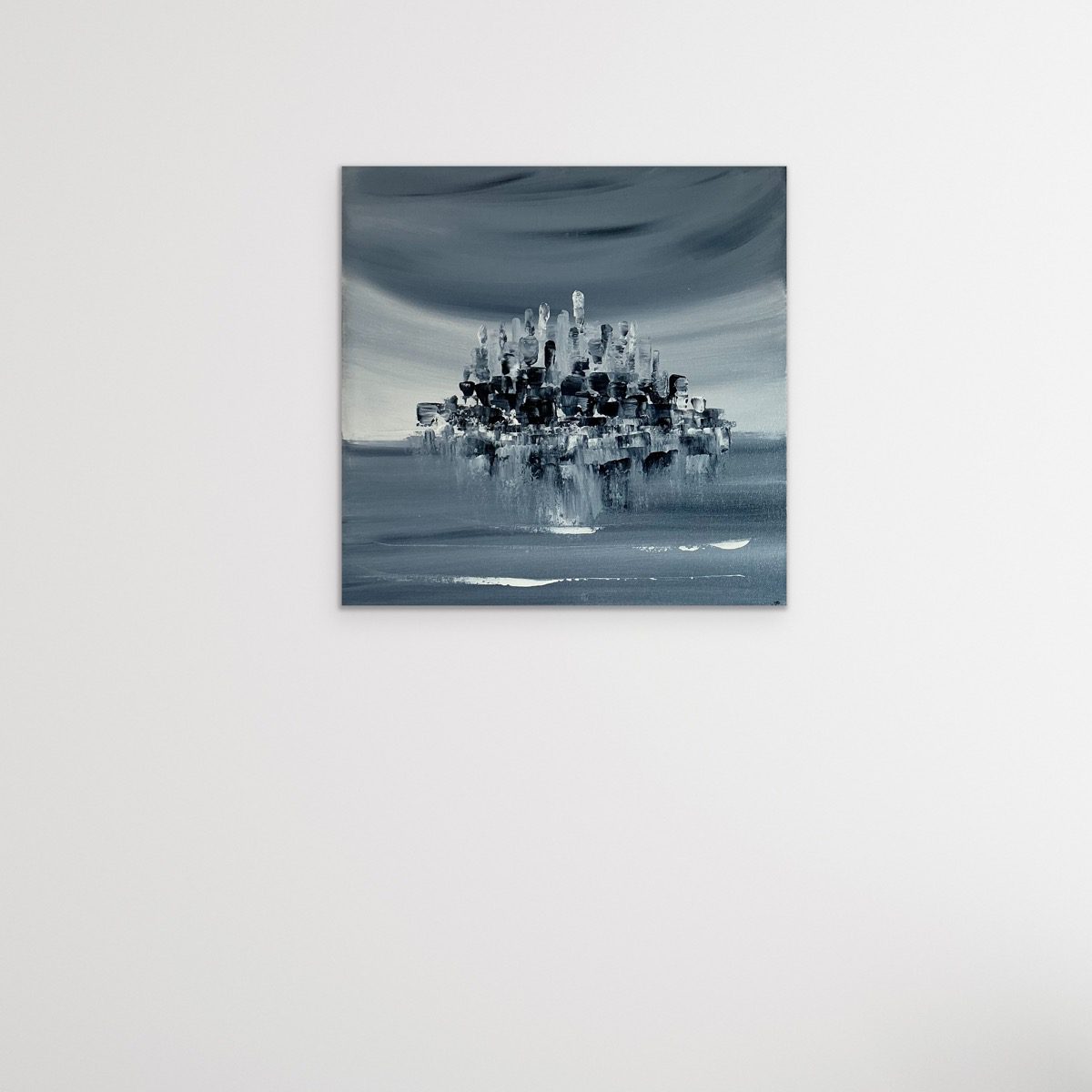 Ce tableau 40×40 cm joue sur les contrastes graphiques , les ombres et la lumière pour suggérer Manhattan sous la pluie, la brume ou l’orage. La composition abstraite et urbaine évoque à la fois l’architecture, les gratte-ciel et le rythme de la métropole, dans un style contemporain épuré et puissant.